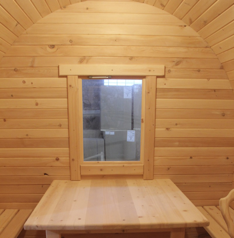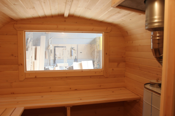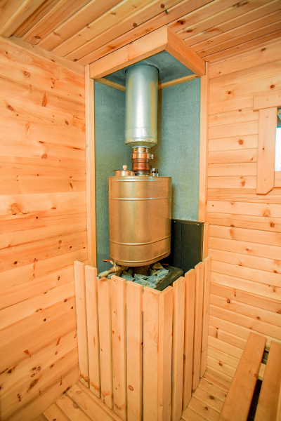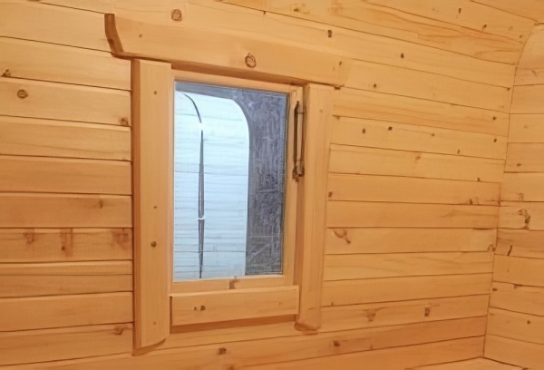 Размер окна варьируется от 120 см до 180 см в длину, ширина согласовывается индивидуально. Добавит света парному отделению, а также визуально расширит пространство.