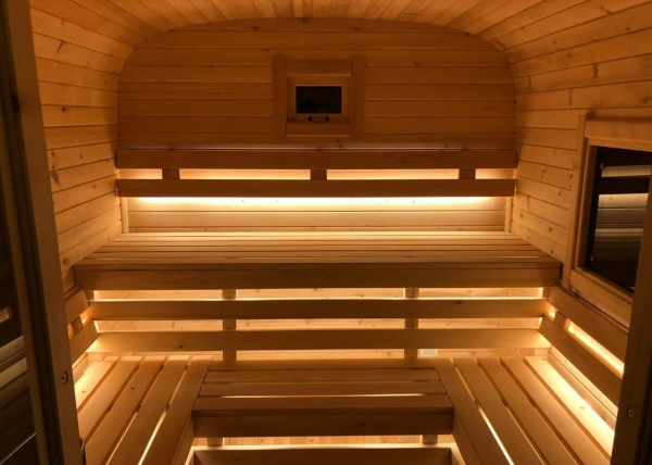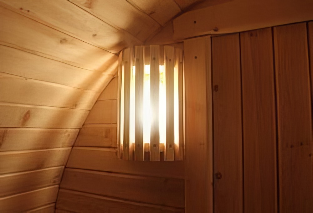 Создаст приятную атмосферу с приглушённым светом, а также визуально расширит пространство парной.
