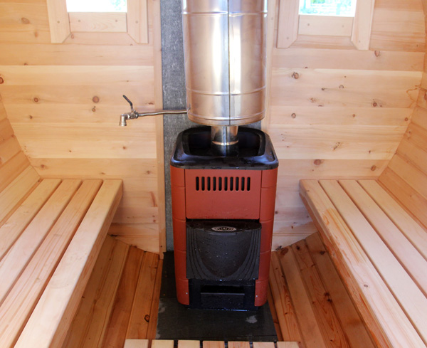 Установка печи с внешней загрузкой позволит сохранить парную в чистоте и сэкономить в ней место. Печь имеет удлиненный топливный канал, за счет чего топку можно вынести как на улицу, так и в другое помещение бани (раздевалку, моечную). Экран из зеркальной нерж. стали входит в стоимость, защитит от неблагоприятных условий внешней среды и от влаги в моечной. Стандартная установка печи - между полками. Боковая установка оплачивается дополнительно.