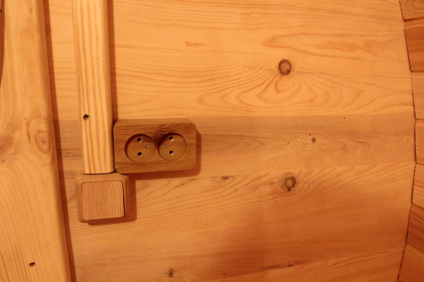 Установка розетки в раздевалке имеет ряд преимуществ: можно включить фен, музыку, подогреть чайник и продолжить банные процедуры за чаепитием.