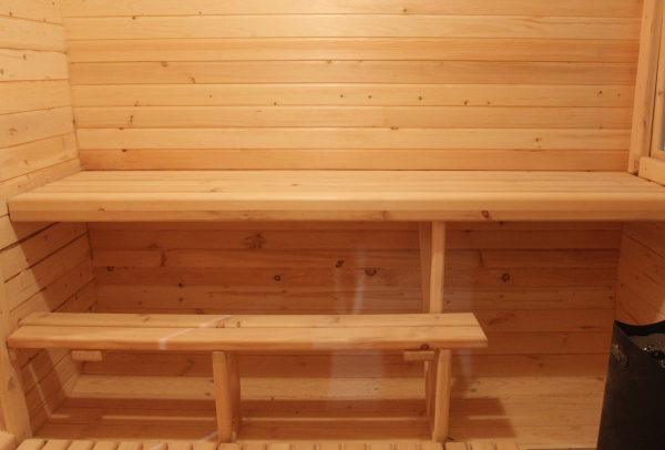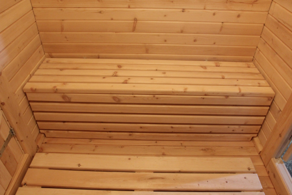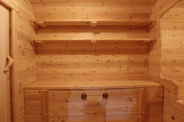 Столик в раздевалке будет удобен при длительном пребывании в бане.