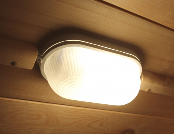 Стандартный светильник будет служить вам верой и правдой, освещая вход в баню.