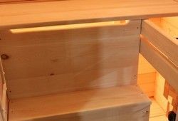 Подспинник из кедра удобен в больших саунах или в индивидуальных проектах в которых возможно расширение полка. Увеличение сидушки уже включено в стоимость подспинника.